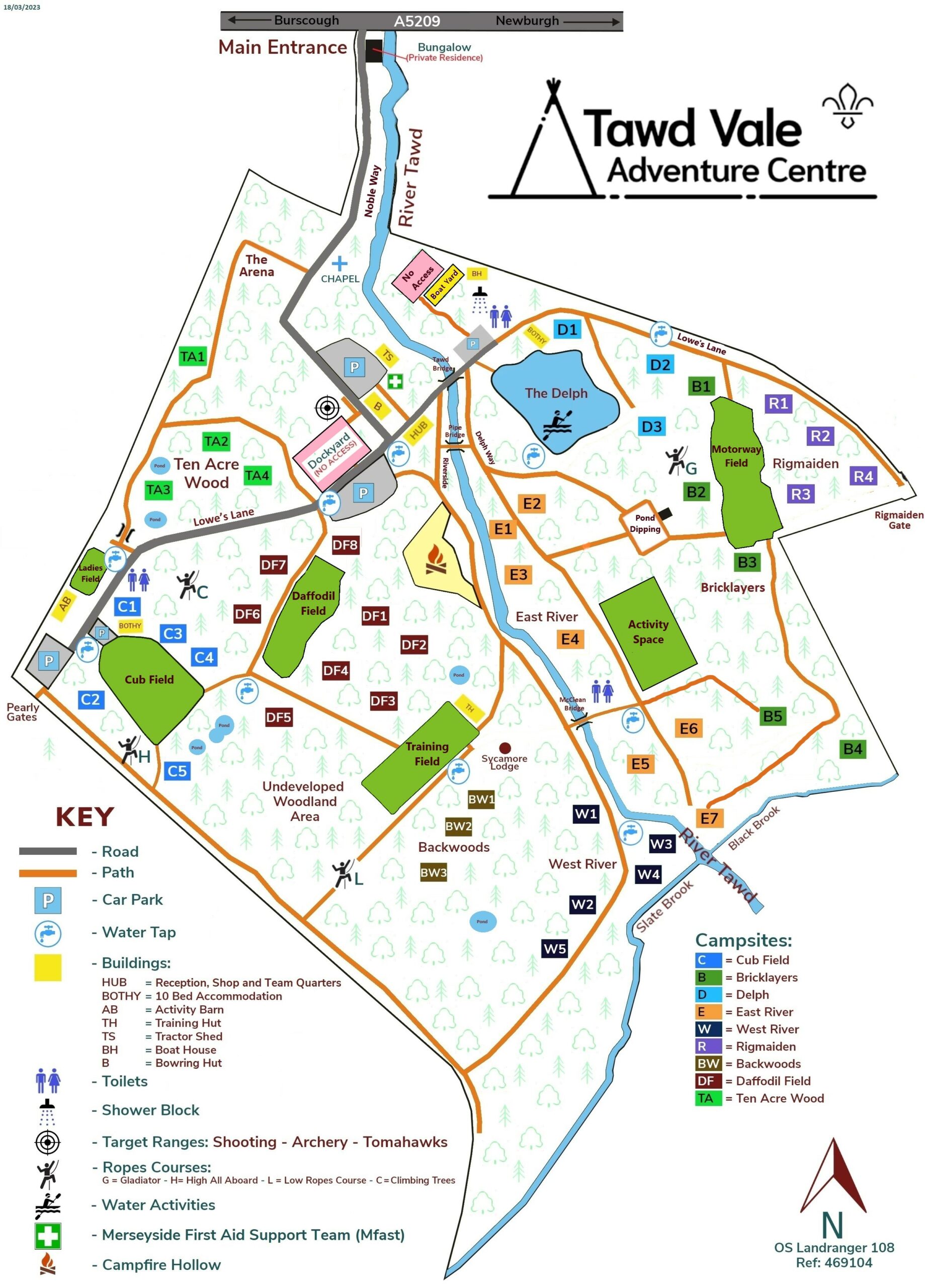 Five sites on and immediately around Cub Field including the pitch by the Cub Bothy